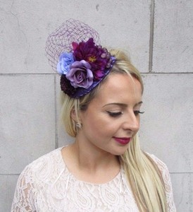 Violet Fonce Lilas Rose Fleur Fascinator Net Cheveux Serre Tete