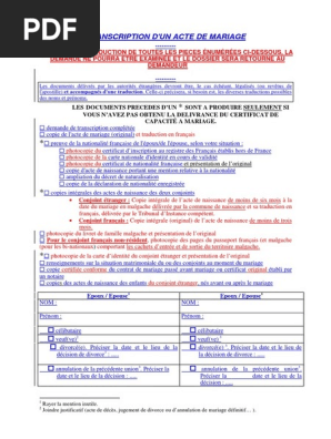 Transcription D Un Acte De Mariage Certificat De Naissance